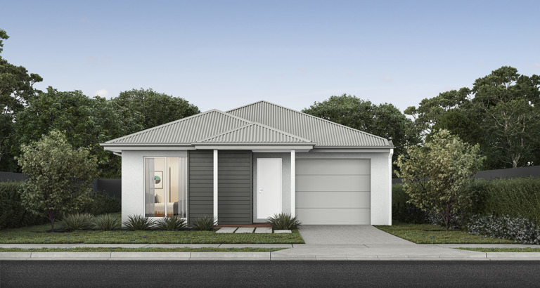 The Kubo 1-14 packs a punch for its compact size, suited to 10.5 x 21m lots. The front of the home boasts a generous main bedroom completed with WIR and ensuite. The kitchen, completed with WIP overlooks the dining and family room creating a welcoming family hub.